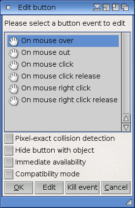 This dialog allows you to turn an object into a button that reacts on user