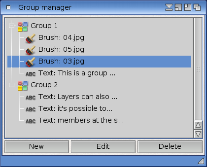 The following buttons are available in the group manager: