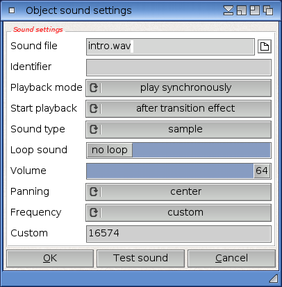 The "Identifier" widget is only for advanced users. You can use it to give your sound a unique identifier. Using this identifier, you can easily access this sound from custom code that you have embedded in your project. Please read the chapter Code dialog for more information.
