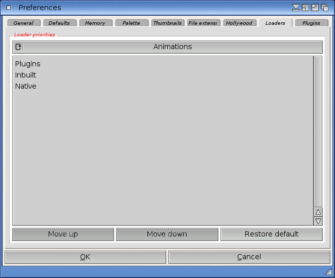 on Amiga compatibles) and "Plugins" (loaders provided by plugins). By default, plugins are