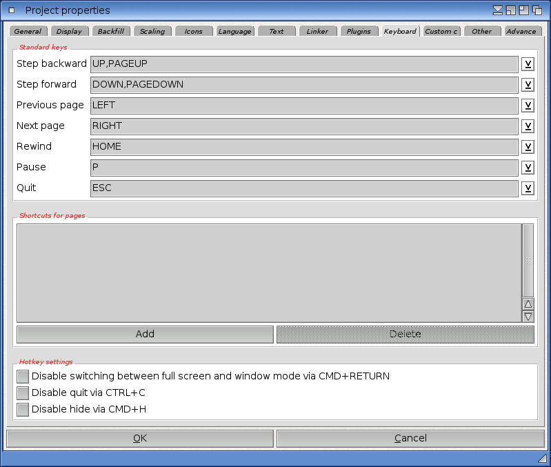the "Display" page of the project properties dialog. Also, Hollywood Designer