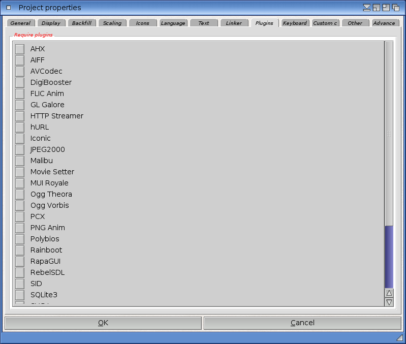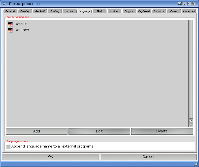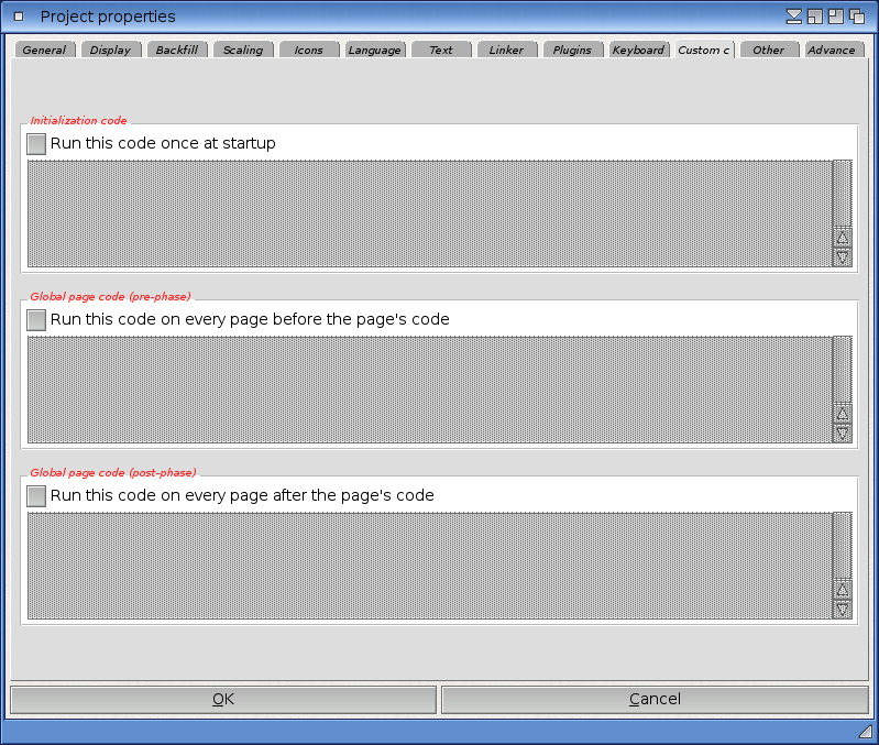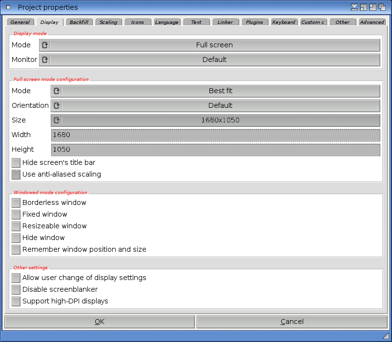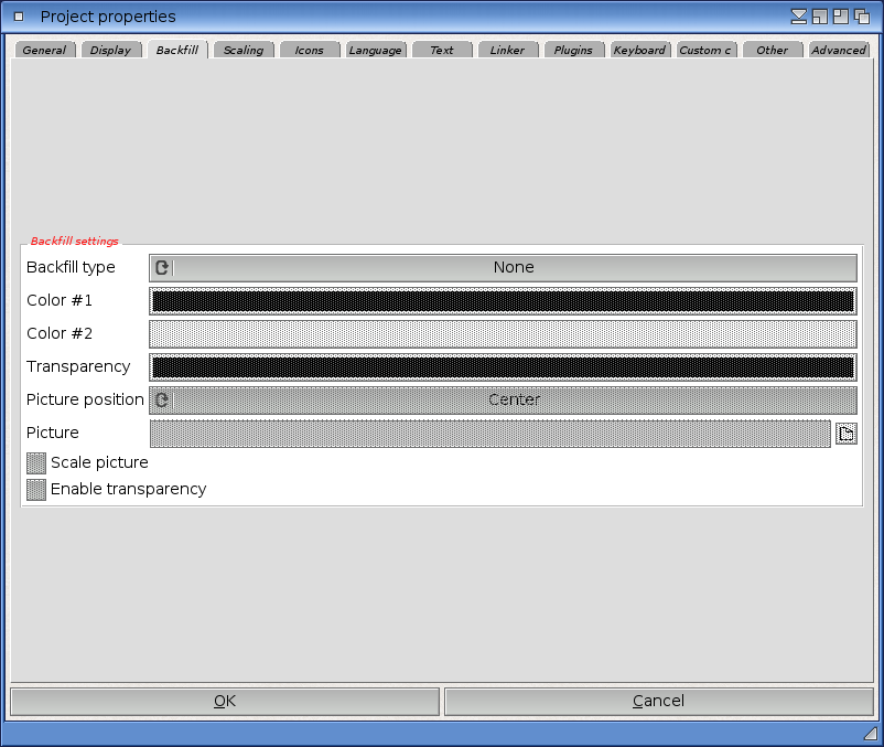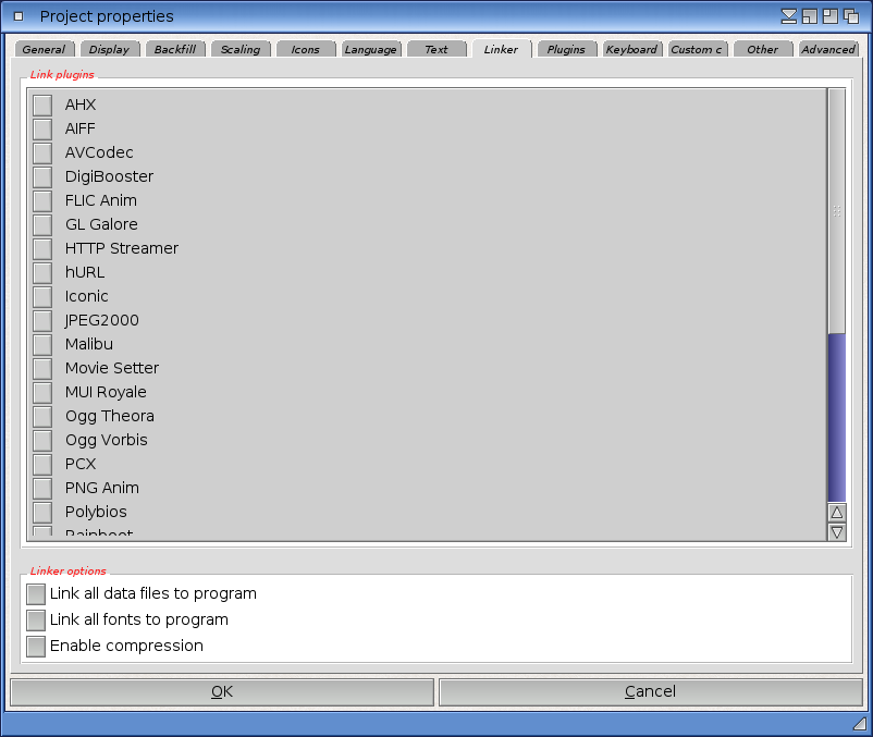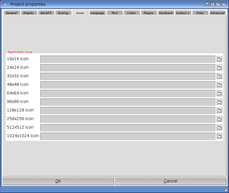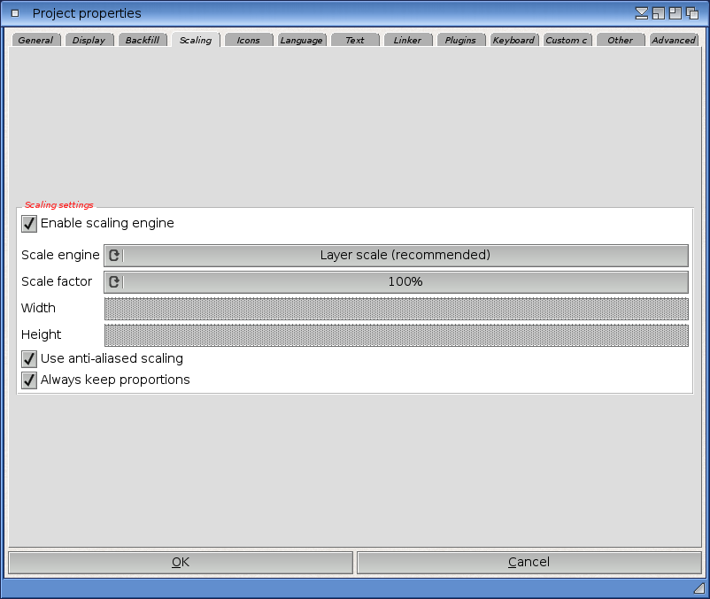 Scaling, Icons, Languages, Text, Linker, Plugins, Keyboard, Custom code, Other, and