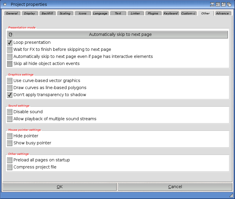 events and the presentation mode is "Automatically skip to next page" (see above),