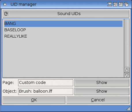 The UID manager is a useful tool to get a comprehensive overview of all the unique identifiers (UIDs) used by your project. It will list all page, object and sound UIDs as well as UIDs used by the Animate object and Choose file to open action events. Furthermore, it will also list all variables used by the Set variable and Get attribute action events. This should make it much easier for you to make sure you don't use the same variable or UID name twice.