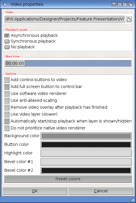 This dialog can be used to configure options for the currently selected video